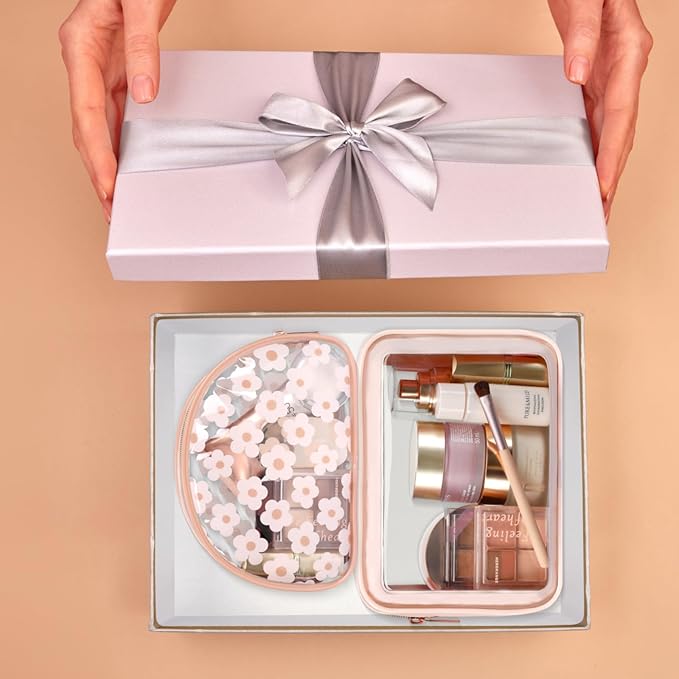 PACKISM TSA Approved Toiletry Bag - Rose Pink Flower Print Clear Shell Bag and Upgrade Color-Edged Quart Size Bag, Perfect for On the Go or Travel, Lightweight and Robust, 2 Pack