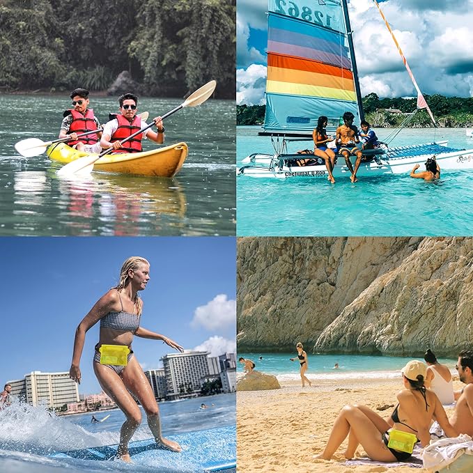 • IDEAL BEACH GEAR: Triple folding waterproof design allows you to enjoy your vacation with peace of mind. Don't worry about your valuables getting wet or lost with this waterproof bag. Whether you are snorkeling, swimming, kayaking, rafting, water slides or any other water activity, you can keep your phone and wallet safe and dry.