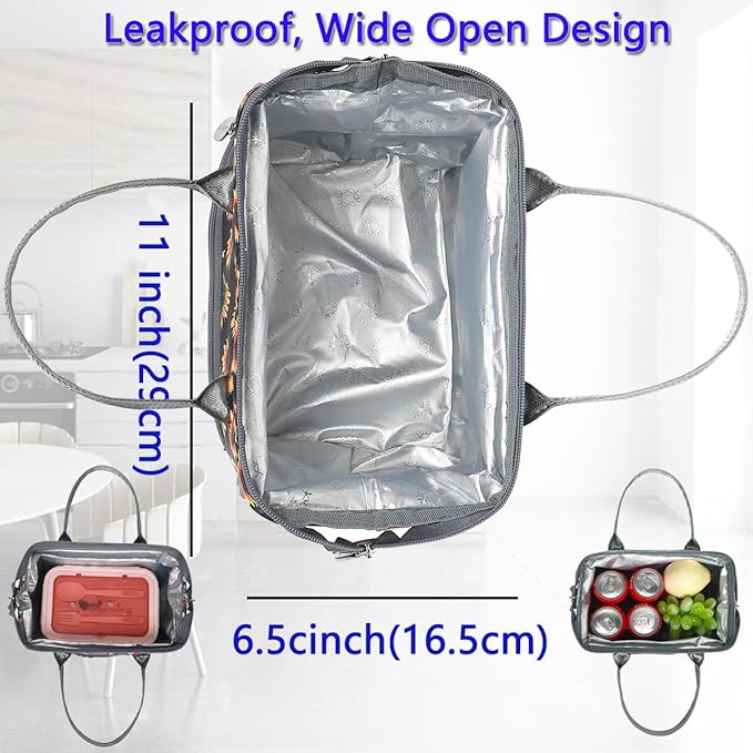 - ✿ Wide-Open Design & Large Size: Our women bag can be opened up to 11"L x 6.5"W by dual zipper closure, you can put into or take out of your lunch or other kinds of stuff horizontally, avoid spilling soup or liquid in the bag. The dimension is:11” L×6.5” W×11” H,it could give roomy storage space you need to hold your favorite meals, delis, and lunch treat. You could fill the compartments or pockets with lunch boxes, food containers, condiments, fruit salad bowls and other essentials.
