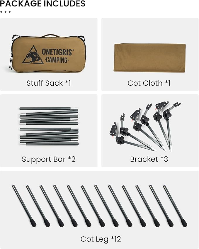 OneTigris SUPRANUBIS Camping Cot, Height Adjustable with Cot Leg Extenders, Strong Support 330lbs, Lightweight Comfortable Folding Bed for Camping, Hiking, Travel, Truck, Beach, Office Nap