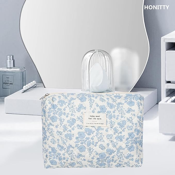 Makeup Pouch,Quilted Cosmetic Bags,Large Floral Make Up Organizer for Women