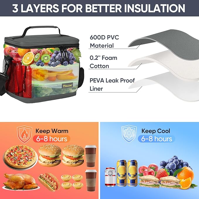 - [PREMIUM MATERIAL] Our BALEINE insulated lunch bag features advanced thermal insulation technology, providing exceptional temperature control to keep your meals hot or cold for extended periods. The high-quality 600D polyester fabric of the lunch bag is tear-resistant, ensuring longevity and durability.