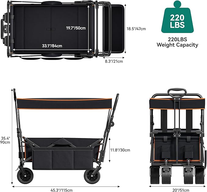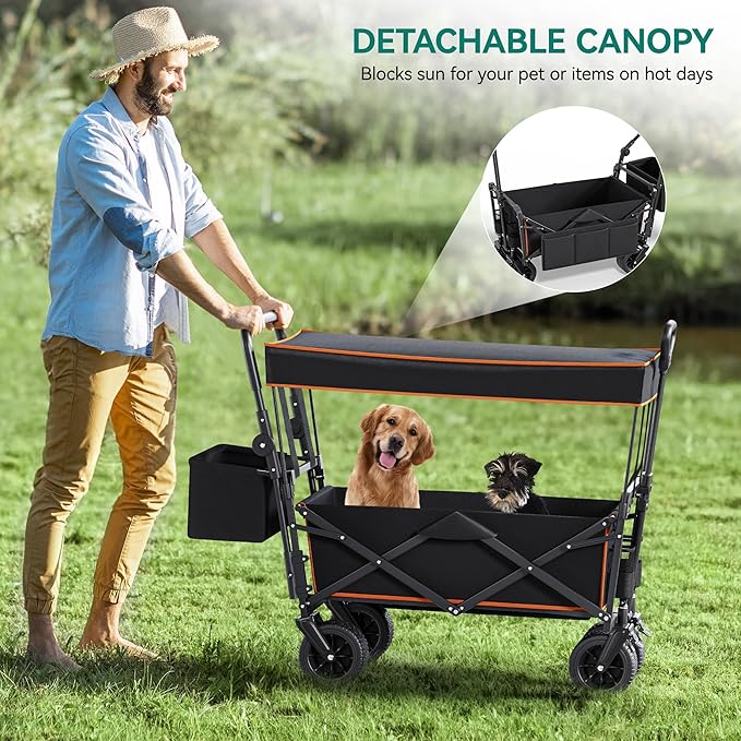 - Easy Storage & Canopy Design: The collapsible wagon cart is easy to store, convenient to carry, and simple to assemble; The canopy design provides great shade and sun protection for pets and various items during hot summers