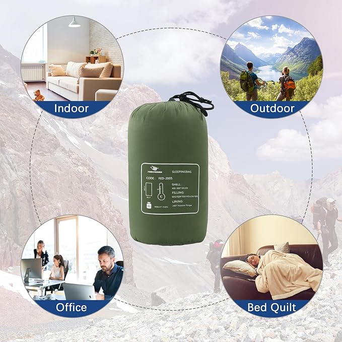 - 【Easy to use】 When using, just take the sleeping bag out of the packaging, unfold the sleeping bag, get into the sleeping bag to rest. Can also be used as a sleeping bag liner for extra warmth. Double warm is like coming home.