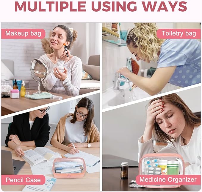 - 【LIGHTWEIGHT & PORTABLE】 The cosmetic bag can easily fit in your carry-on bag or luggage, and can be placed in the bathroom, on a dresser, or on an office desk. It's a convenient way to hold personal essentials such as cleanser, sunscreen, face cream, medicine, and lipsticks
