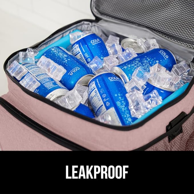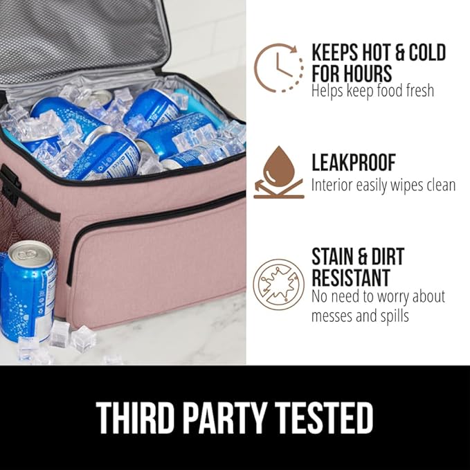 GORILLA GRIP Reusable Insulated Lunch Box Bag for Women Men, Large Leakproof Soft Cooler Bags, Multiple Compartments, Mesh Pockets, Adjustable Strap, Food Tote Keeps Drinks Cold, 8L, 10x9, Pink