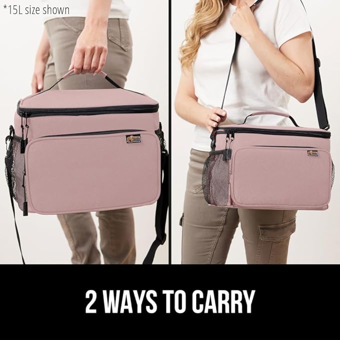 GORILLA GRIP Reusable Insulated Lunch Box Bag for Women Men,15L, Leakproof XL Soft Cooler Bags, Multiple Compartments, Mesh Pockets and Adjustable Strap, Food Tote Keeps Drinks Cold, 13x9, Pink