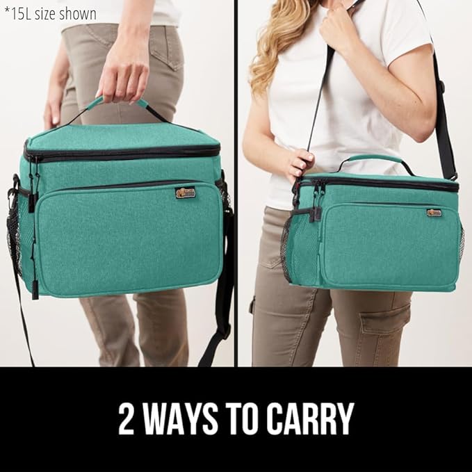 GORILLA GRIP Reusable Insulated Lunch Box Bag for Women Men, Large Leakproof Soft Cooler Bags, Multiple Compartments, Mesh Pockets, Adjustable Strap, Food Tote Keeps Drinks Cold, 8L, 10x9, Turquoise