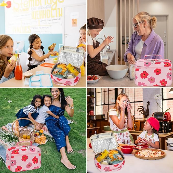 - It's super popular and very classy with beautiful pink-red flower pattern,The lunchbox bag is leak-proof and friendly to carry on.The bag is suitable perfect for kids, children, girls to school, women to work. You will love to bring this adorable insulated lunch box to school everyday!