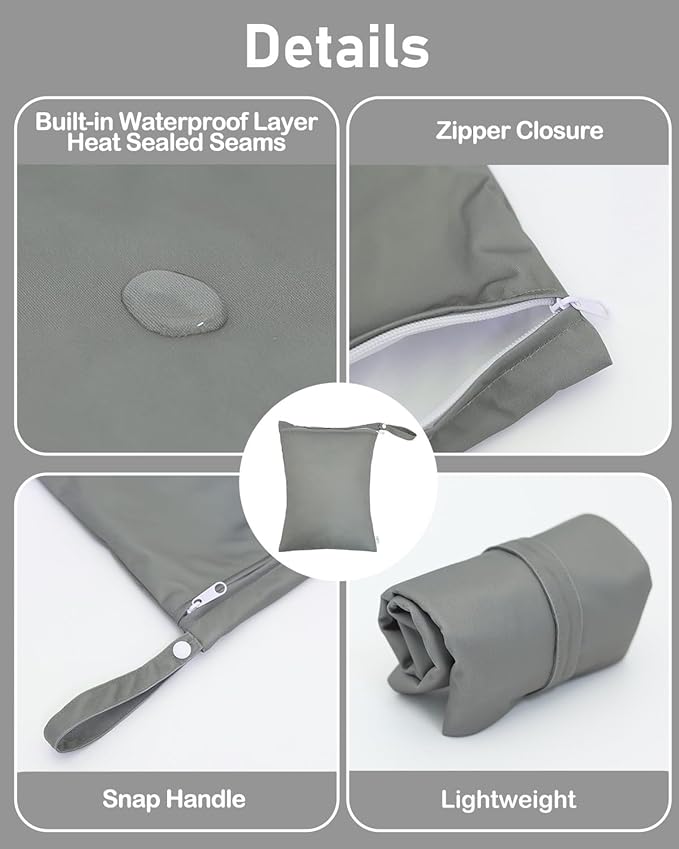 - Waterproof: Made from durable, waterproof material, the 2L camo roll top bag ensures your items stay dry in any wet environment. The roll-top closure provides a secure, watertight seal. The zippered wet bag with one pocket is suitable for protecting contents from either getting wet or the wet contents leaking out, which is more made for keeping a wet swimsuit, gym clothes, diapers, etc.