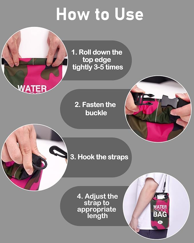 - Great Matching for Versatile Use: The 2L roll top backpack sack is very useful for water activities, including swimming, kayaking, beach trips, rafting, boating, hiking, camping, and fishing. Perfect for both wet and dry storage needs.