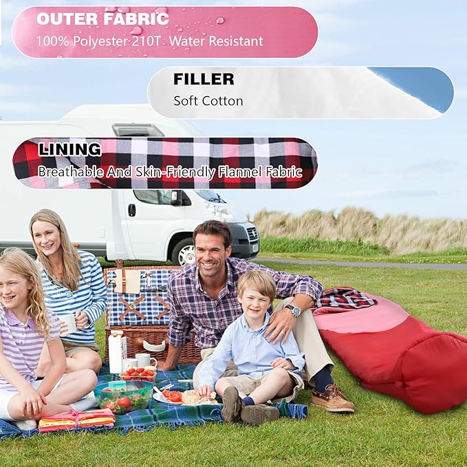 - Machine washable: The sleeping bag is waterproof and moisture-proof with a 210T rip-proof polyester shell and a soft, comfortable flannel lining. Easy to clean, machine washable.