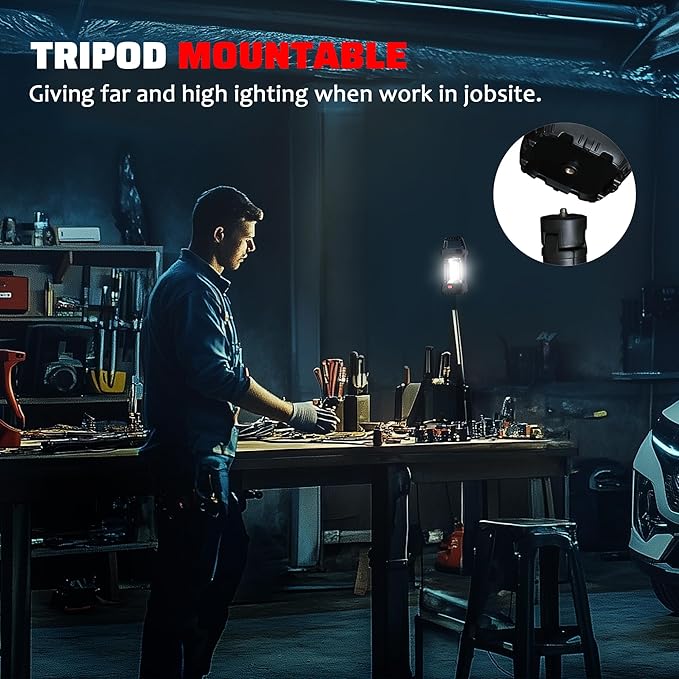 - 【Anti-slip Handle & Tripod Mountable】 This rechargeable LED lantern features a slip-proof handle for easy hanging and universal 1/4” female thread, providing a hand-release light source. Buckle on the handle can be easily attached to backpack, tent, hook ring, rope, thin branches, camping gear and so on when camping, hiking or other outdoor activities. With portable handle to be hung above your head, allowing direct down light for reading. You can also mounting the outdoor camping lights onto standard tripod when in job site or auto-repairing. This LED flashlight is a good companion to help light up your patio or backyard during winters!