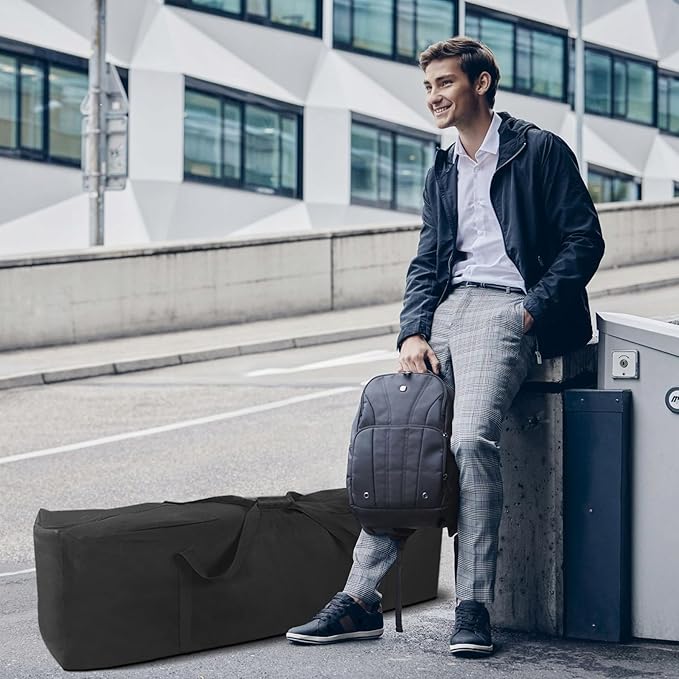 COOLBEBE 52" Sports Duffle Bag - 160L Extra Large Travel Duffel Luggage Bag with Upgrade 2-way Lockable Zippers, Sturdy & Water Resistant Long Duffle Bag for Camping Moving (Black 52inch)