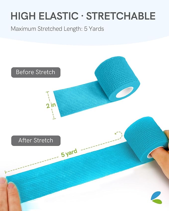 - Highly Elastic and Comfortable: Designed for flexibility, our bandages stretch up to 1.5 times their original length, providing a snug, secure fit. This elasticity allows for versatile application on different body parts, ensuring comfort and effective support.