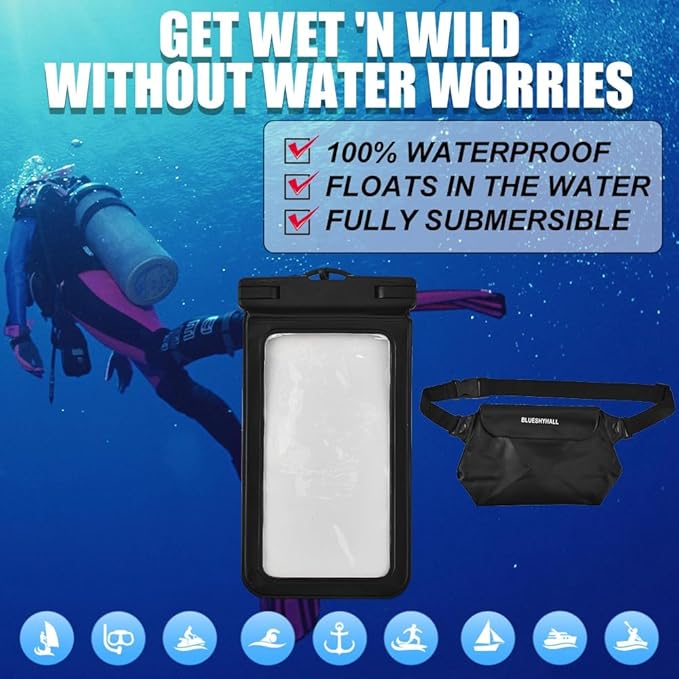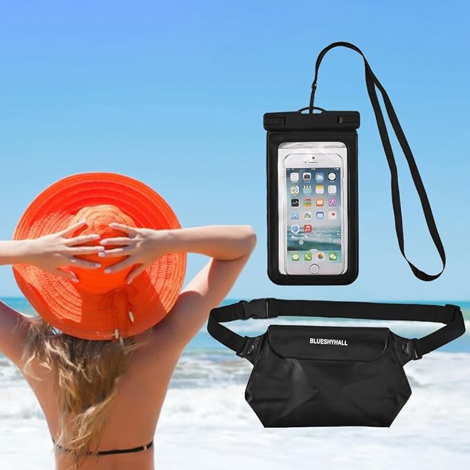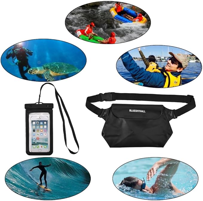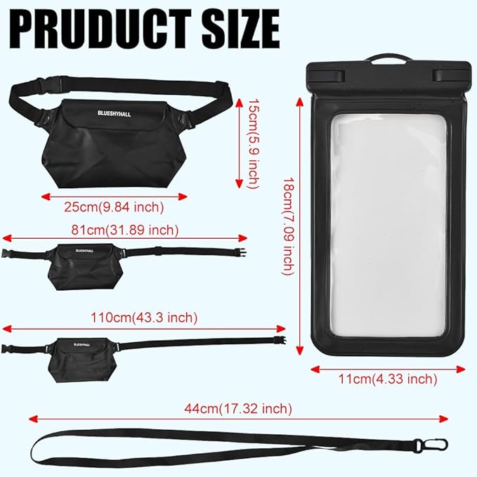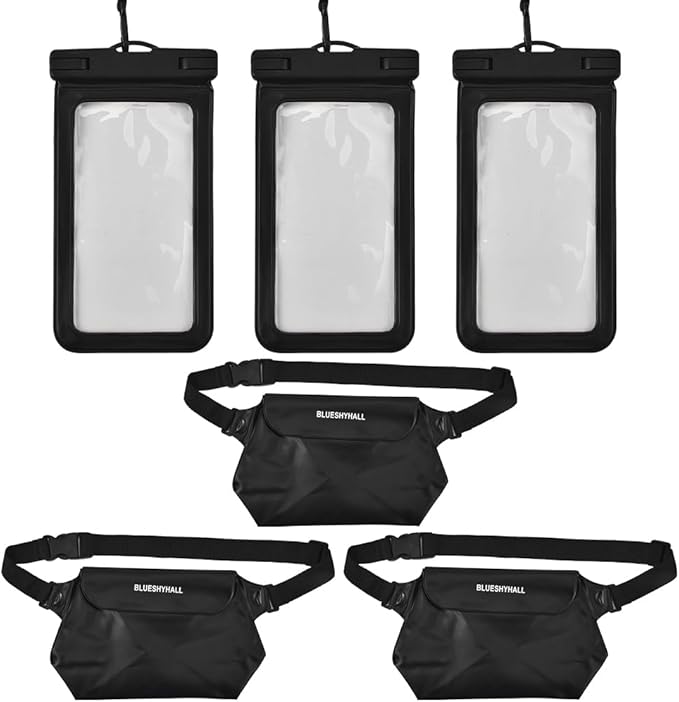 JSCARLIFE Waterproof Phone Pouch Fanny Pack (6 Pack), Waterproof Bag for Cruise Boating Swimming Snorkeling Kayaking Beach Poo Accessories, Waterproof Case Water Protector Waist Pouch for Women Men