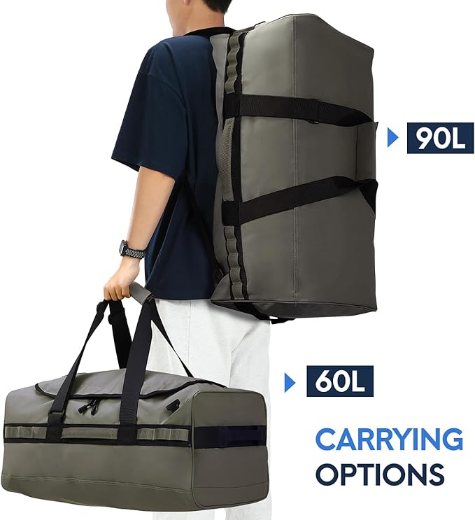 Haimont Large Duffle Bag for Men Women, Convertible Duffel Backpack, Heavy Duty Back Pack for Travel, Outdoor, Camping Hiking, Army Green 90L