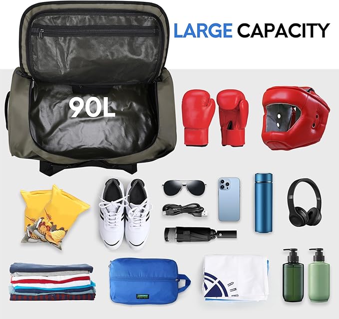 - Large Capacity Duffle Bag: Large main compartment provides plenty of room to hold your sports gear and traveling necessities, 1 large mesh zipper pocket under flap to keep light things and easy access, 1 small zipper pocket and 2 side zipper pockets to organize your small items, Haimont duffel bag backpack is available in 40L, 60L and 90L