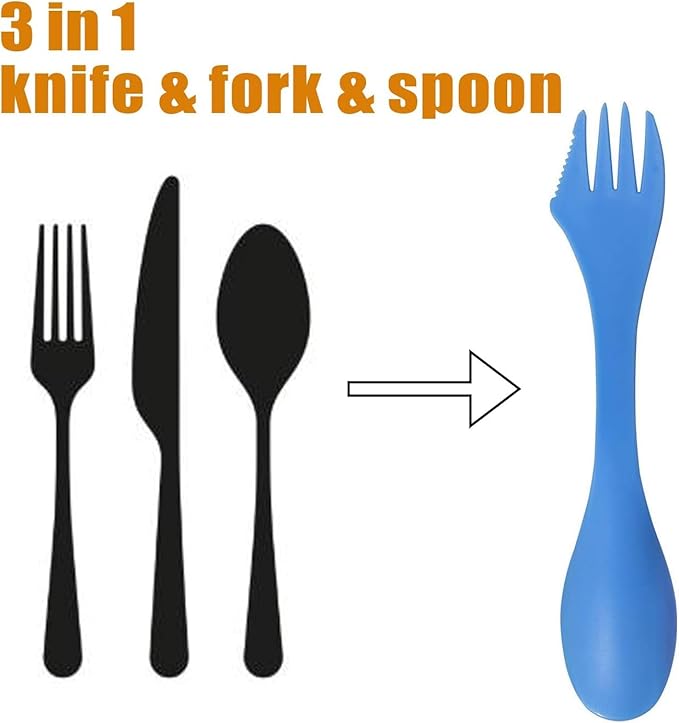 - 🌹Spoon-fork-knife combo with serrated edge on side of fork, designed deep enough to function as a spoon.
