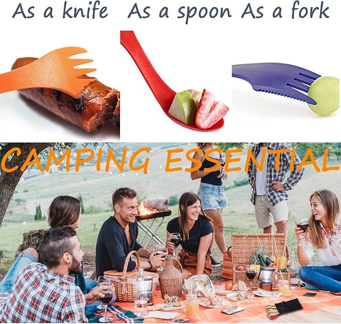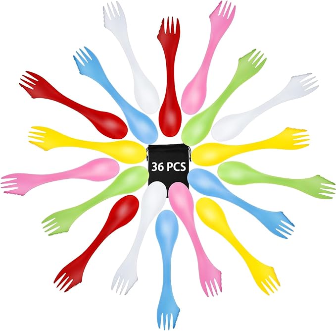 36 Pack Sporks - Spoon, Durable & BPA Free Tritan Sporks, Spoon Fork & Knife Combo Utensils with Portable Strong Waterproof Bag and Stainless Multifunctional Bottle Opener for Camping Outdoor, 6 Color