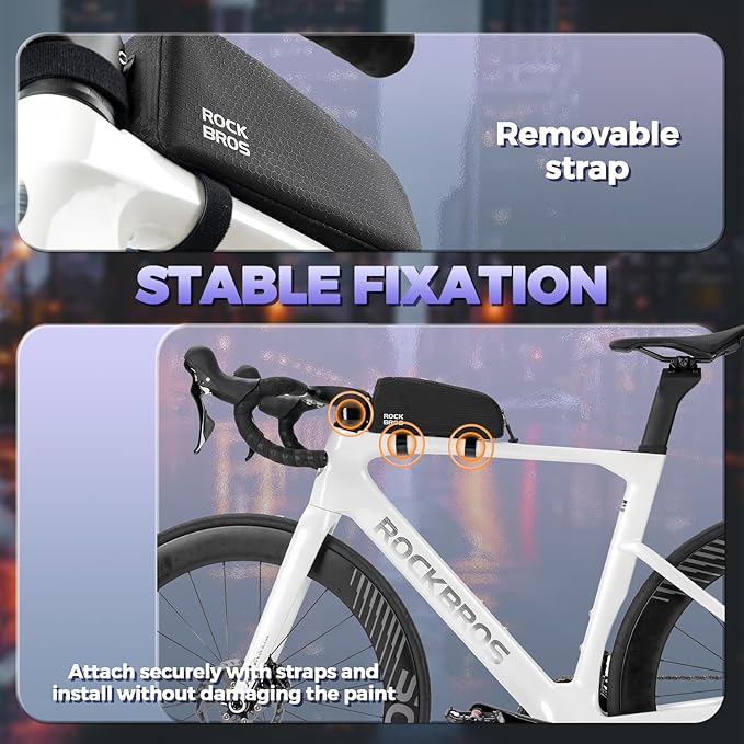 - EASY TO INSTALL: Adjustable hook and loop design, suit for more size MTB road bikes. Install and release the top tube bag quickly and without any tools