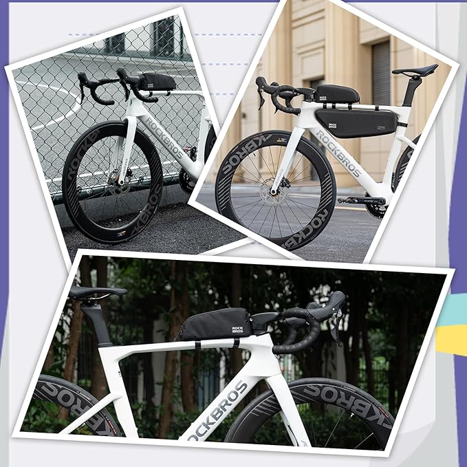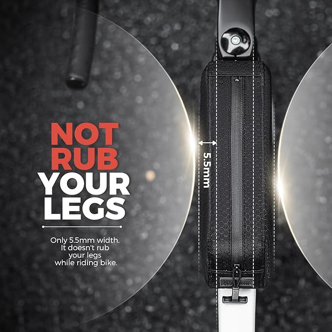 - COMFORTABLE & CONVENIENT: The front bike bag has a long slim body. Proper space design make you ride more smoothly and comfortable(Your knees will not hit the frame bike bag easily). It's portable, you can take this bike pouch easily while leaving away from your bike