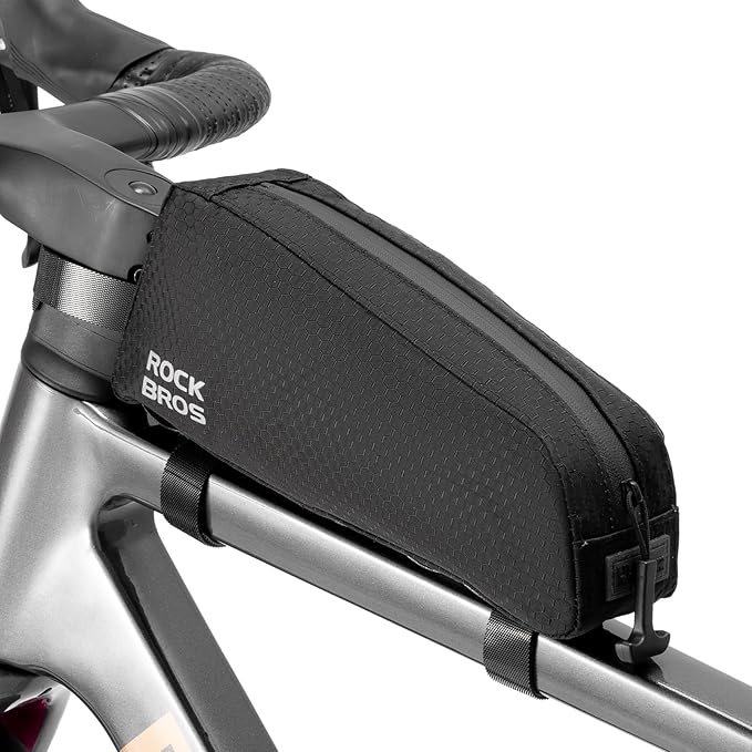 ROCKBROS Bike Top Tube Bag - Waterproof Front Frame Bag Pouch Pack for Mountain & Road Bike - Large Grip Black