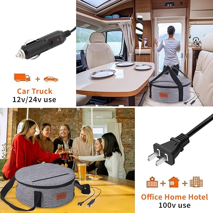 - ENJOY HOT FOOD AT ALL TIMES:This is great to transport your casserole or lassagna to the potluck! If you have church functions where you need bring a casserole or a lassagna to a potluck.Turn on the power and enjoy steaming hot food anytime!