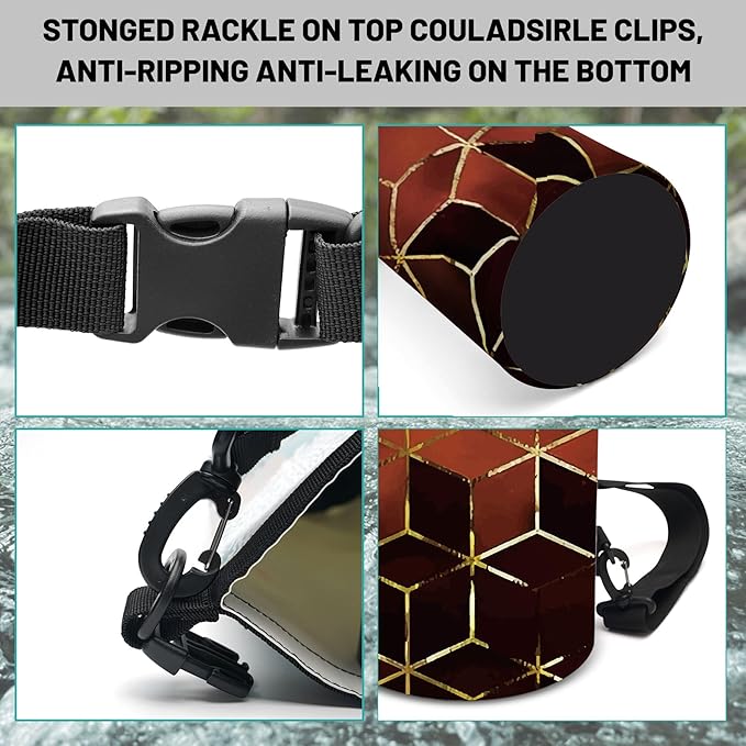 - Adjustable Carrying Options: Available in 5L and 10L with a removable shoulder strap for cross-body carry, or a 20L version featuring two adjustable straps for backpack-style comfort.Roll-top closure system provides secure watertight seal, keep your gear dry in any wet situation.Unique Orange Cubes Gold Like Print Diamond design dry bag backpack Carry it your way!