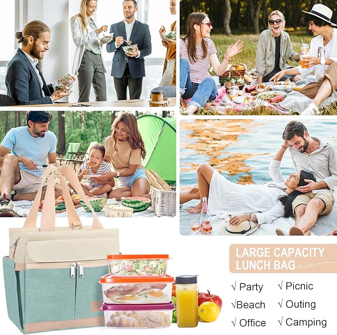 - Long-Lasting - This robust and long-lasting lunch bag boasts a wide range of uses. Its stylish and lightweight design makes it suitable for various purposes such as a lunch tote, insulated bag, cooler bag, picnic bag, miscellaneous item carrier, or shopping bag. Perfect for dining out, picnicking, road trips, office lunches, beach outings, and more, this lunch box effortlessly adapts to different settings, providing both functionality and fashion-forward versatility.