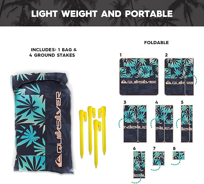 QUIKSILVER Sand-Free Beach Mat – Large Waterproof Outdoor Picnic Blanket, Lightweight Foldable Mat for Beach, Camping, Park, or Travel – Fits 4-6 People, Quick-Dry, Durable
