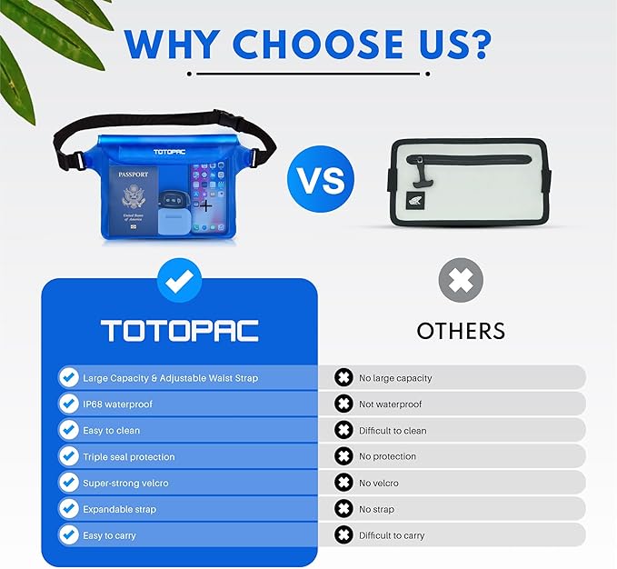- Perfect for Water Sports & Adventures – Whether you're swimming, kayaking, boating, or at a water park, this waterproof bag keeps your valuables dry and secure, so you can focus on fun without stress.
