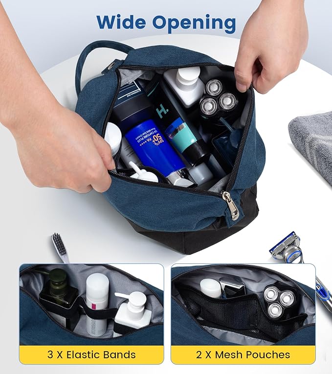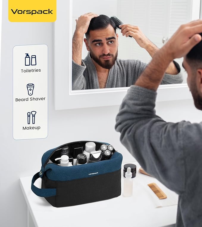 Vorspack Travel Toiletry Bag for Men - Lightweight Mens Toiletry Travel Bag Water Resistant Dopp Kit Shaving Bag for Skincare Toiletries Bathroom Gifts - Navy Blue