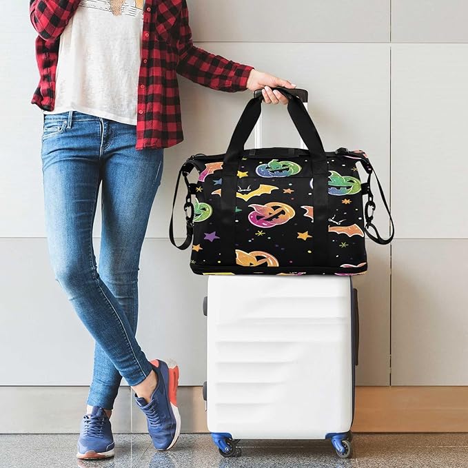Pumpkins and Bats Travel Duffel Bag Waterproof Gym Sport Tote Bag Carry On Weekender Bag with Compartment