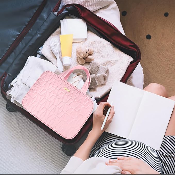Voova Hanging Travel Toiletry Bag for Women Men, Waterproof Makeup Cosmetic Organizer Holder for Toiletries Accessories, Traveling Essentials,Shampoo,Full-Sized Container, Brushes Kit Set, Pink