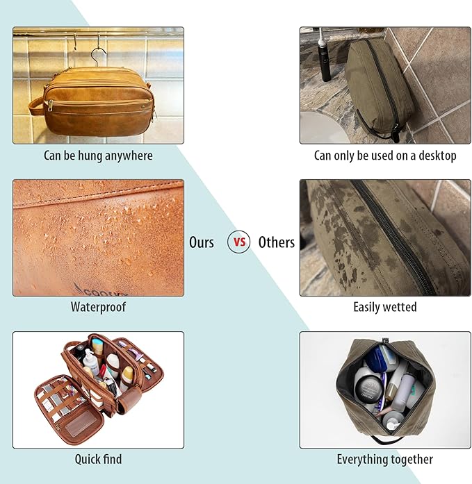 - MATERIAL CHARACTERISTICS - Made of waterproof PU leather, soft, sturdy and durable. The lining is made of 210D polyester,which can give your toiletries the best protection.