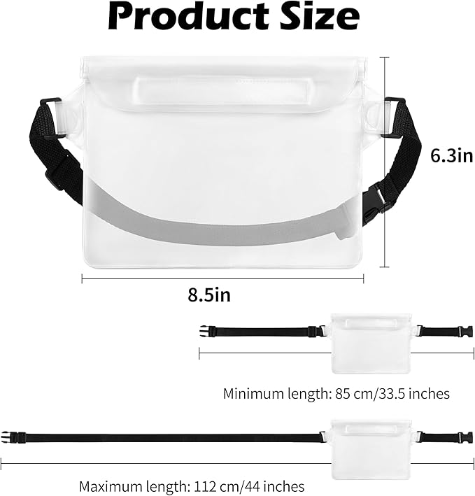 • ADJUSTABLE STRAP: You can choose to wear it around your waist, neck or shoulder when you are doing water sports or hiking. The size of the belt is adjustable, adjustable range: 33.5 inches - 44 inches (including the length of the waist pack).