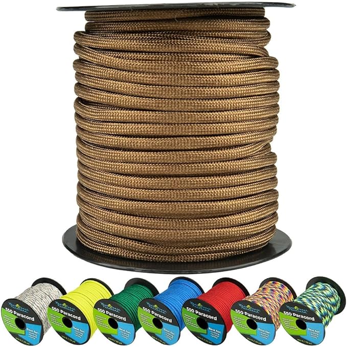 West Coast Paracord 550lb Paracord Spools – 7 Strand Type III Tactical Parachute Cord for Hiking, Camping, and Fishing – Coyote Brown (50 ft)
