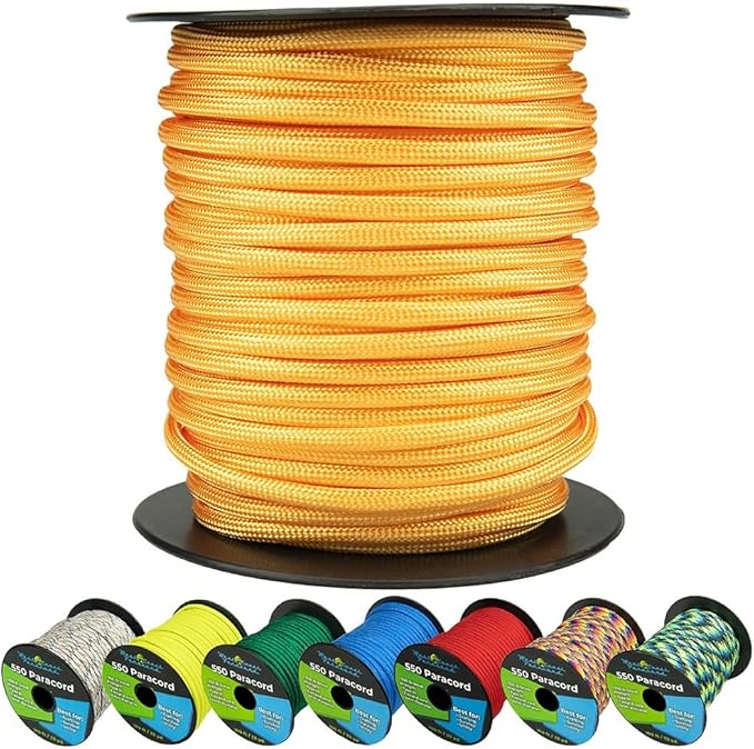 West Coast Paracord 550lb Paracord Spools – 7 Strand Type III Tactical Parachute Cord for Hiking, Camping, and Fishing – Goldenrod (100 ft)