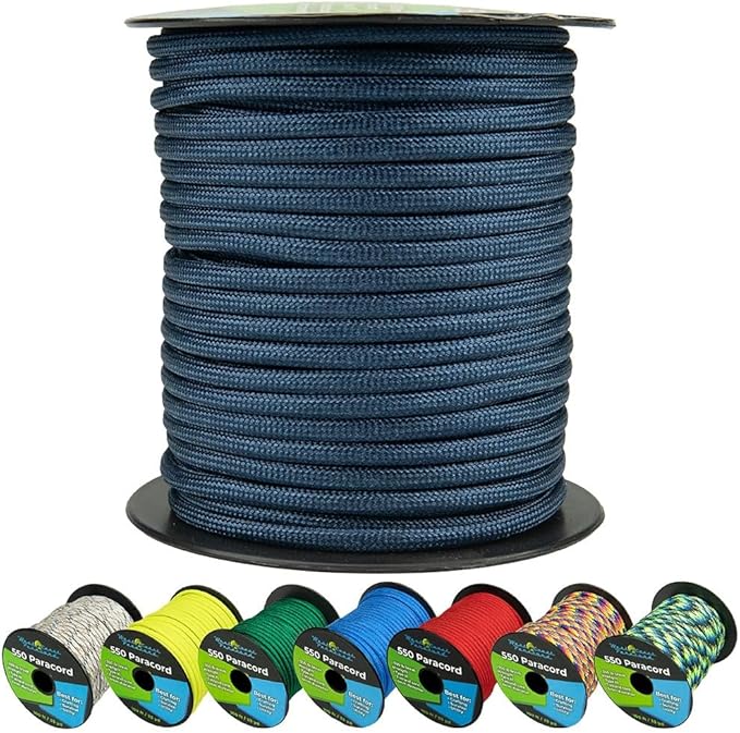 West Coast Paracord 550lb Paracord Spools – 7 Strand Type III Tactical Parachute Cord for Hiking, Camping, and Fishing – Midnight Blue (100 ft)