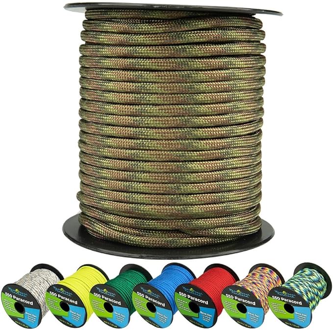 West Coast Paracord 550lb Paracord Spools – 7 Strand Type III Tactical Parachute Cord for Hiking, Camping, and Fishing – Multi Camo (50 ft)