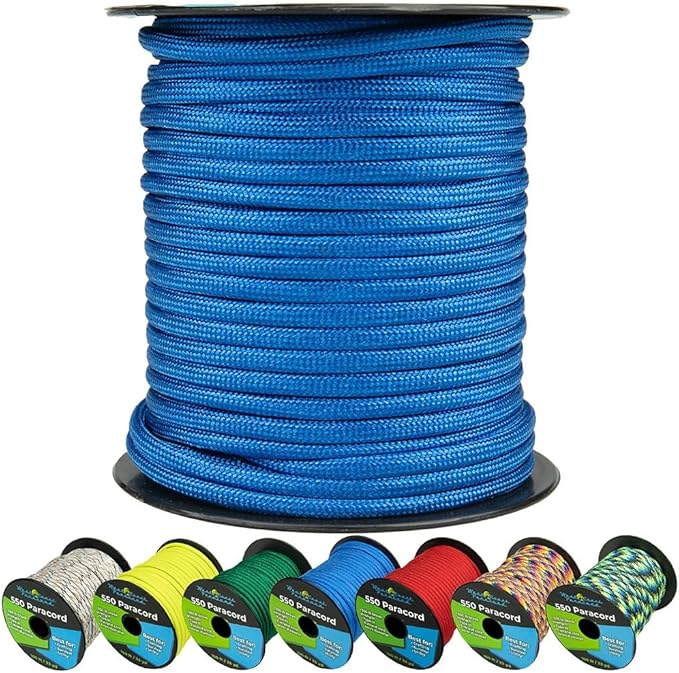 West Coast Paracord 550lb Paracord Spools – 7 Strand Type III Tactical Parachute Cord for Hiking, Camping, and Fishing – Electric Blue (1,000 ft)