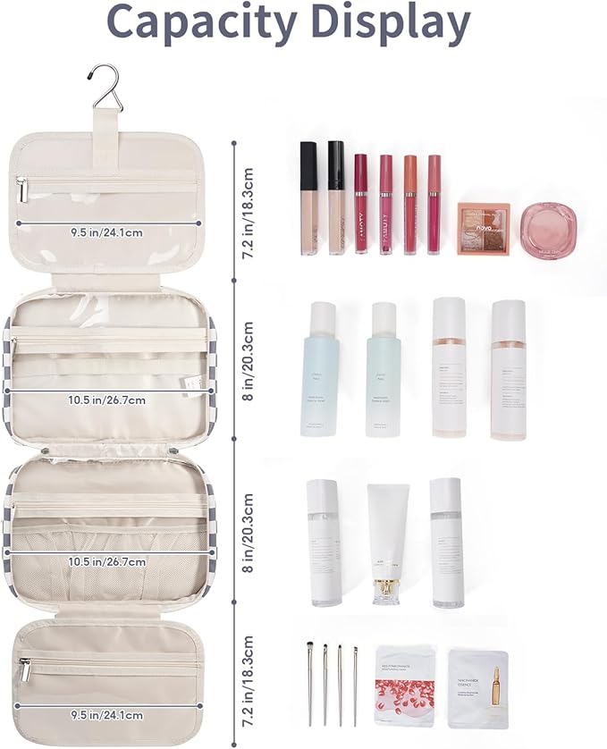 - PLENTY of ROOM - Fold size 10.75x8x5.5 inch, easily fit travel-size toiletries as well as makeup like shampoo, conditioner, lotion, toothpaste, toothbrushes, hair brush, shaving kit and a few extra items