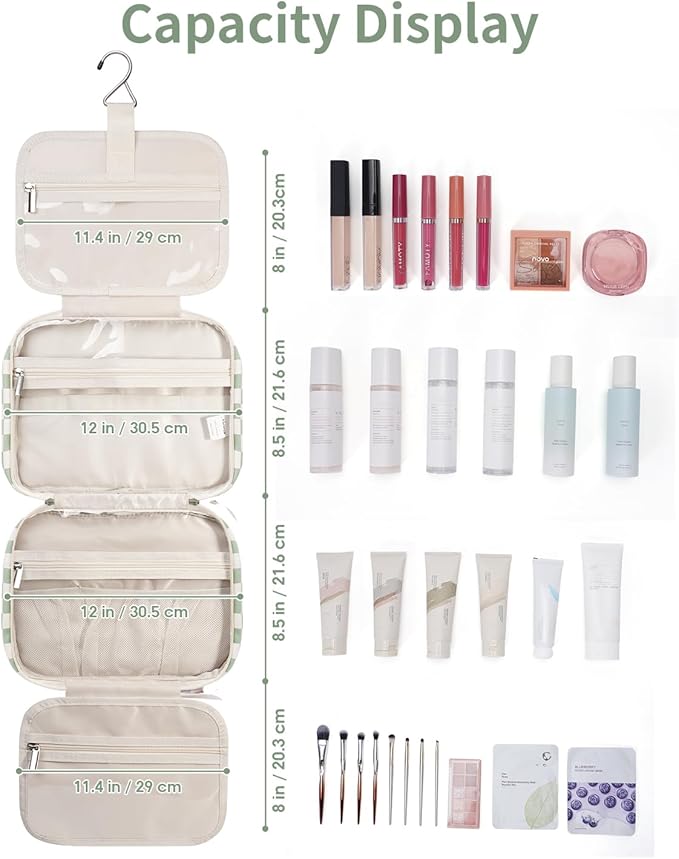 - NOT BULKY DESIGN - Large Capacity yet compact design, weighing 16 ounces. large metal hook allows hanging the toiletry case from towel rack, coat hook or wherever is available, making your toiletries and cosmetics displayed well for easy access