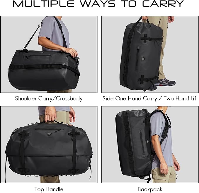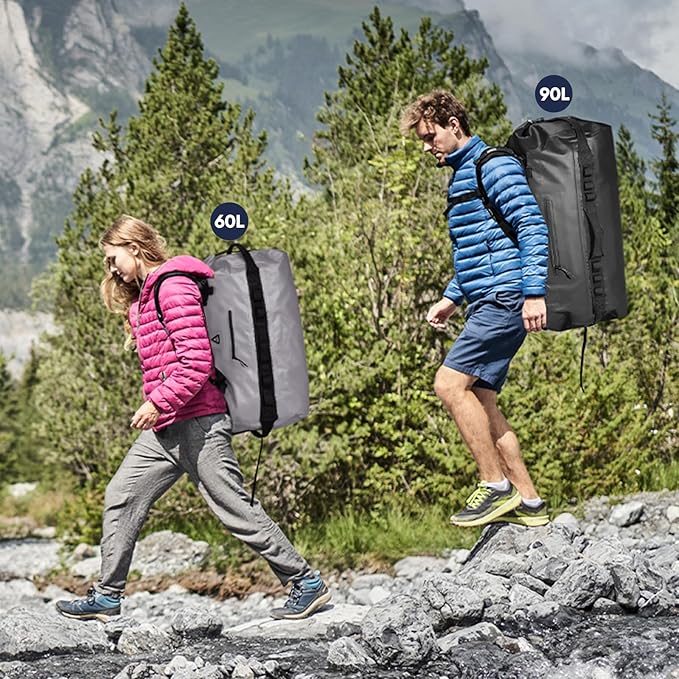 Haimont Large Waterproof Duffel Backpack Roll-Top Heavy Duty Dry Duffle Bag for Boating, Travel, Motorcycle, Kayaking, Camping, 60L