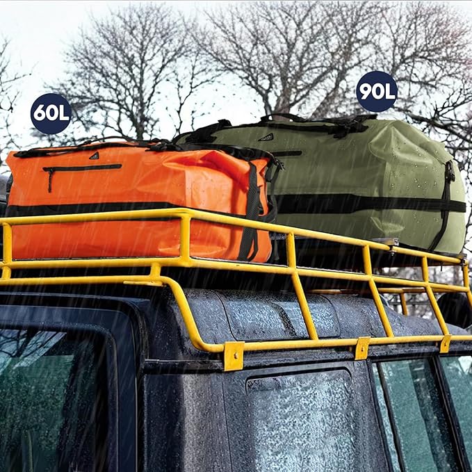 • Large Capacity with Multiple Pockets: Waterproof duffle 60L with large main compartment provides plenty of room to hold your luggage/ski gear/camping essentials, 1 waterproof zipper front pocket accesses frequently needed items, 1 internal zipped pocket in the middle for storing your valuables, 2 inner mesh pockets on each side, convenient for you to organize your items