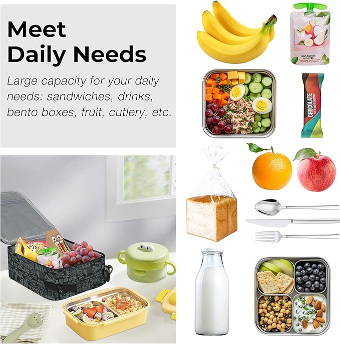- Kids Insulated Lunch Bag: Made of expanded powerful EPE foam and PEVA safe film, can keep food warm and fresh longer than others; Suitable for going back to school, picnic, camping, travel, ect