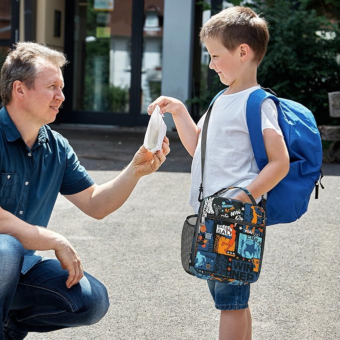 Clastyle Black Street Basketball Insulated Lunch Bag for Kids, Portable Large Thermal Cooler Lunch Bag for Boys, School Lunch Box Bag with Bottle Holder