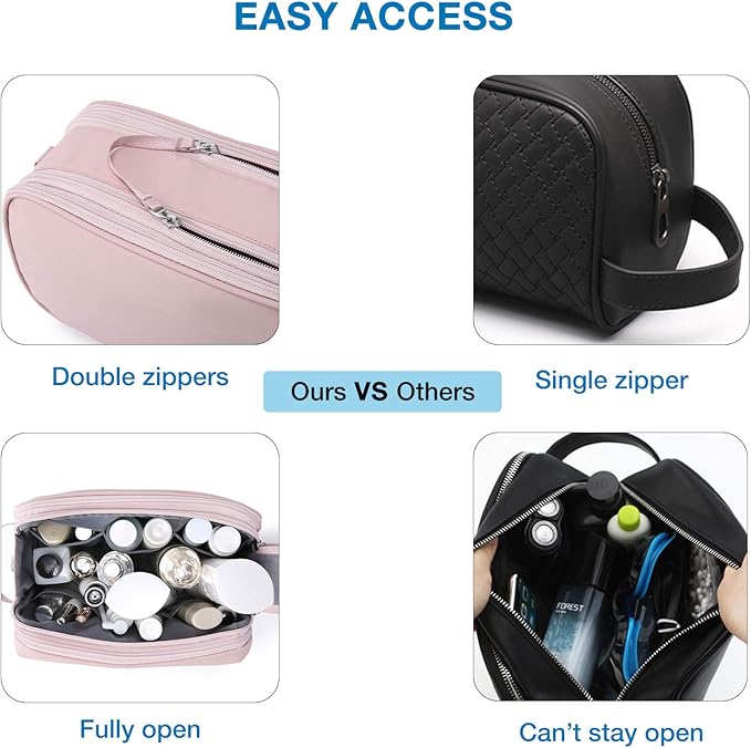 - ๐๐๐ฉ๐๐ซ๐๐ญ๐ ๐๐จ๐ฆ๐ฉ๐๐ซ๐ญ๐ฆ๐๐ง๐ญ: The front waterproof pocket can keep the wet/dry items separated. The back pocket design includes an elastic band and zippered pockets for better organization of various toiletries and makeup items