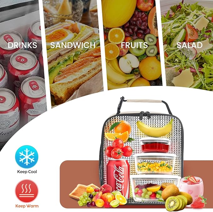 - 【Great insulation】 With a pearl cotton insulation layer and an aluminum film interior lining, lunch bags provide excellent insulation capabilities for both keeping your food warm and maintaining its coolness.